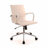 Современное кресло для руководителя, с хромированным каркасом и механизмом качания с возможностью фиксации в нескольких положениях.